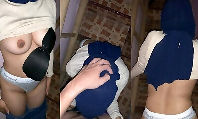 Blowjob and Rear End Plow With Hijab Desi Coworker Mistress On Factory Stairs