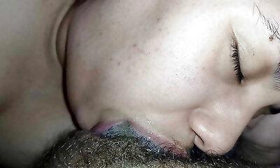elle dévore ma bite et reçoit du lait chaud dans sa petite bouche