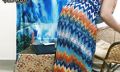 Husband helps Super-sexy Wife wearing Saree Blouse