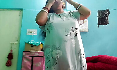 Super hot and sexy desi wife teasing and pressing her immense knockers