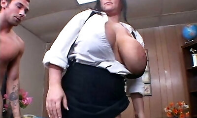 Naughty teacher tempts horny student, he can't take it and boinks her big pussy really hard until he cums on her big tits