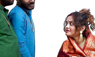 NEWLY MARRIED BRIDE & GROOM MAKE A Fantasy STORY IN HER WEEDING NIGHT, Faux-cock FUCKING, HARDCORE Orgy, SEXY SRABONI
